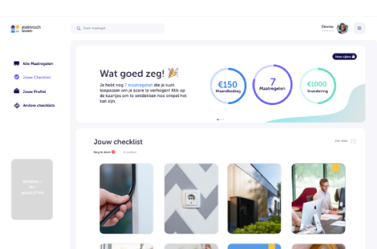Elektrisch leven probeert je duidelijkheid te geven over de volgende stap in je verduurzaming, zonder dat het meteen een technisch verhaal wordt of je overladen wordt met een te groot project.